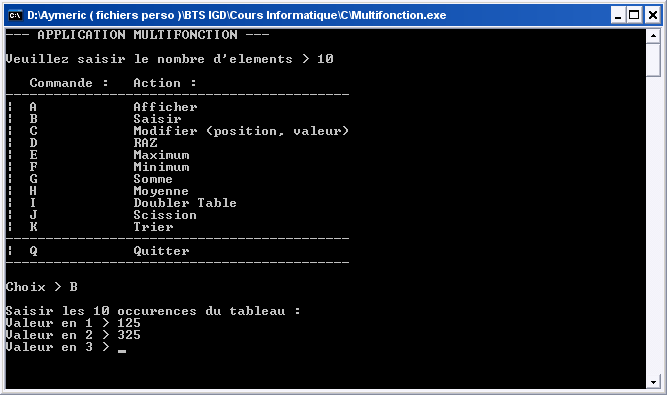 L'utilisateur doit d'abord indiquer l'ordre dans lequel trier les entiers :